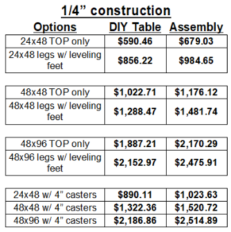50% deposit required on all VersTABLE orders. Lead Time 7-10 Days